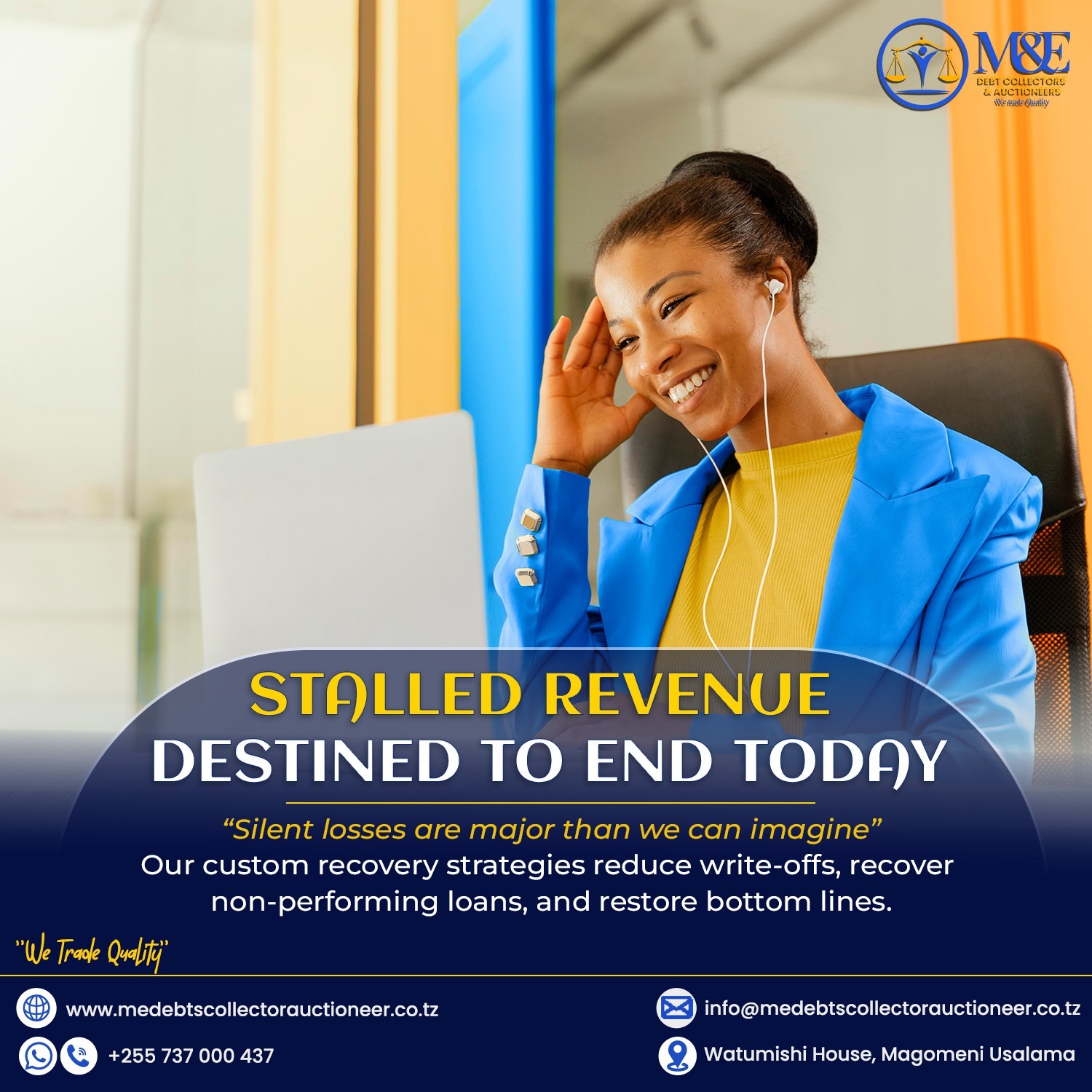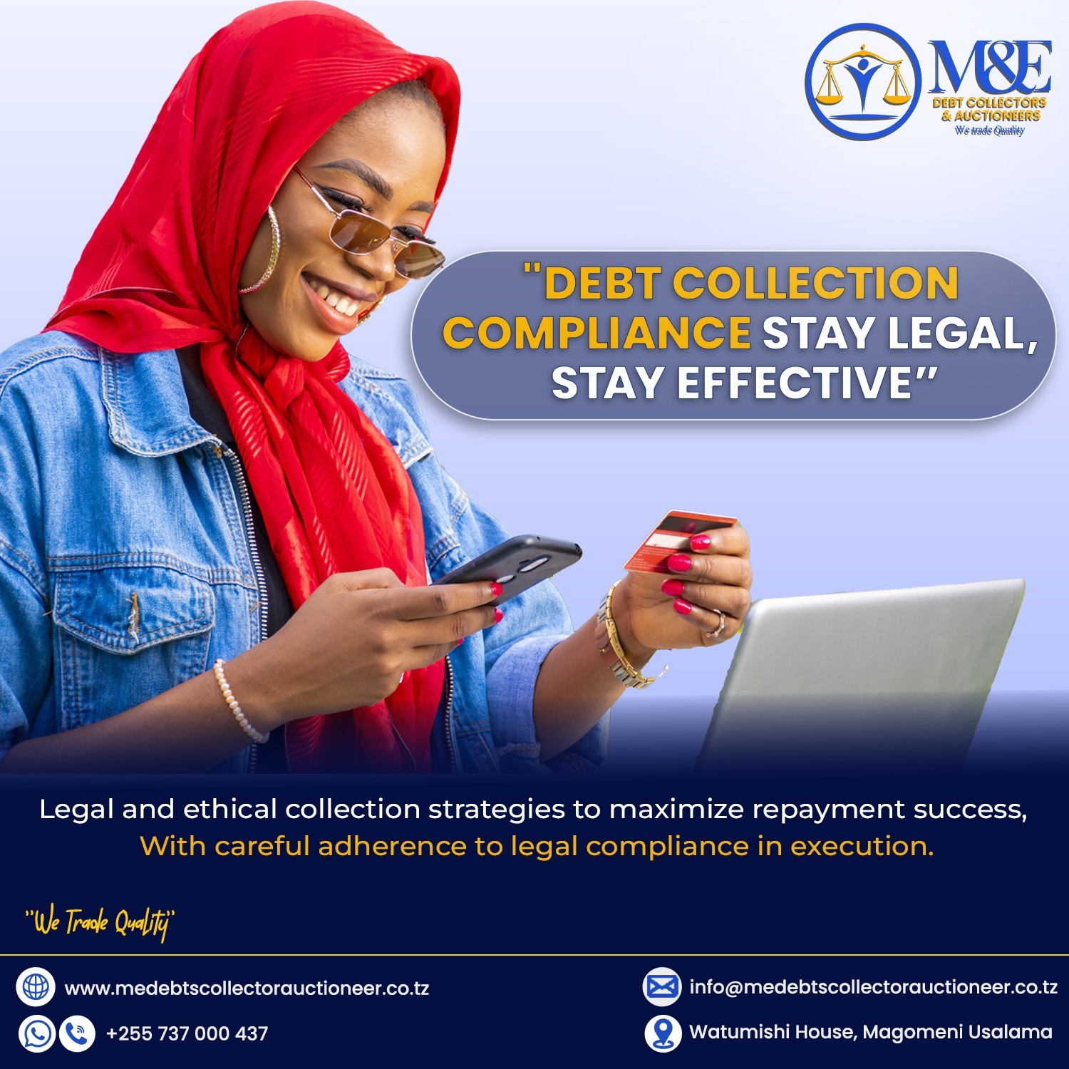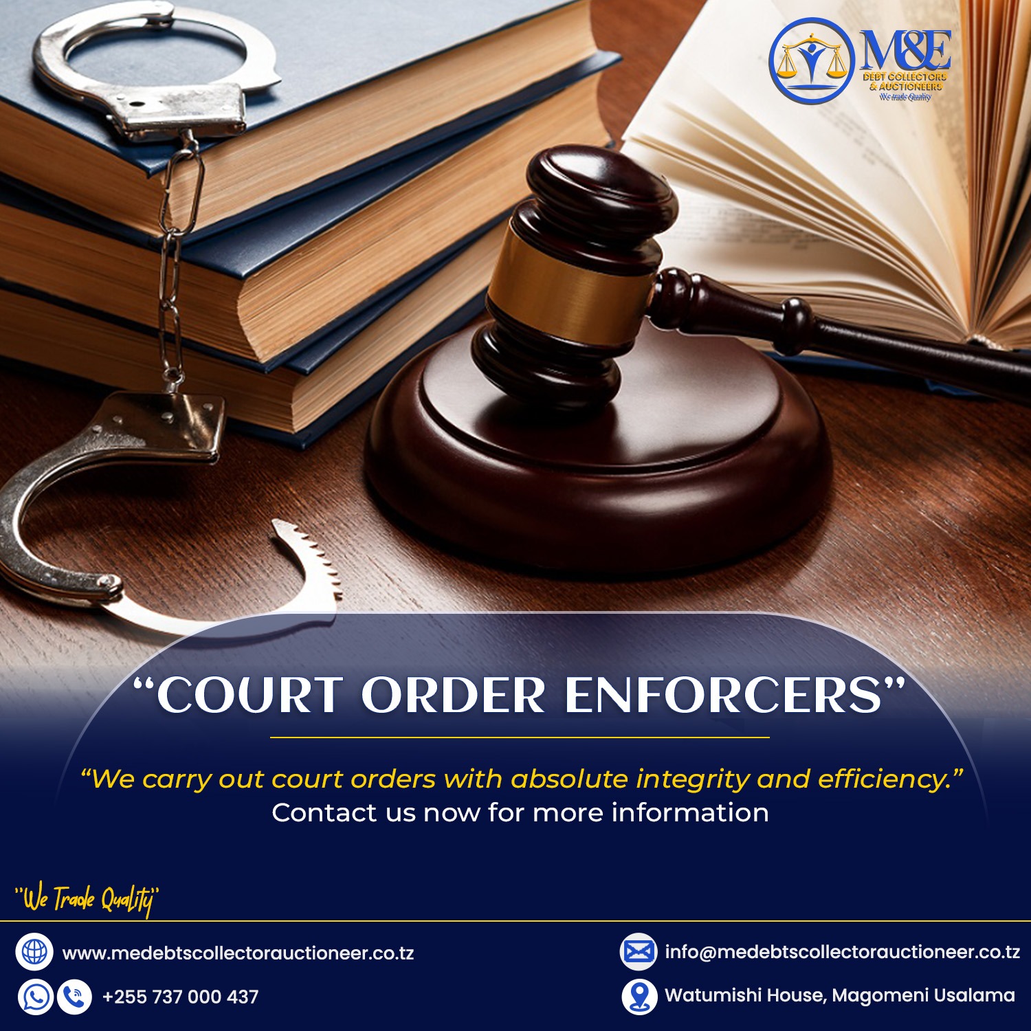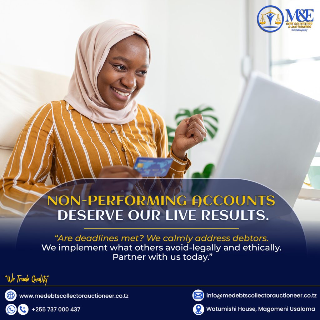 M&E debt collectors and Auctioneers (T) Limited is a company owned by Tanzanian Directors with relevant experience in the industry. It is licensed by Ministry of finance to undertake debts collection services and public auctioneering. It is also registered to the High court of Tanzania as a court broker to undertake realization of charged security, execution of court orders and carrying out eviction orders and other forms of execution as instructed by Court of Republic of Tanzania. In additions to the above service, we execute repossession of lawful.. Read More >>>